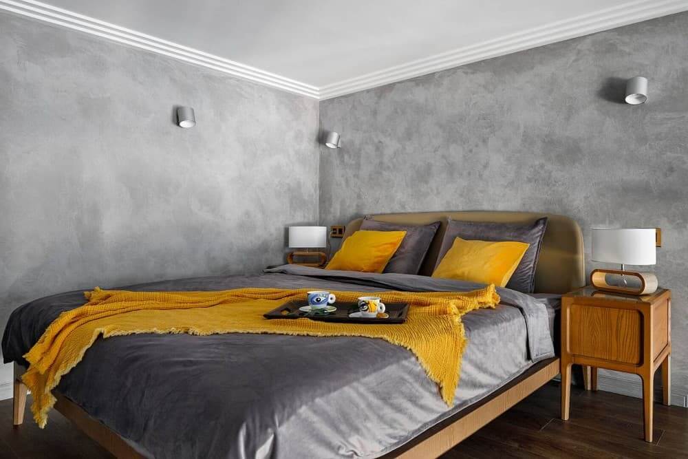Двуспальная кровать в проекте квартиры в ЖК «Суббота», дизайнер Елена Албатова
