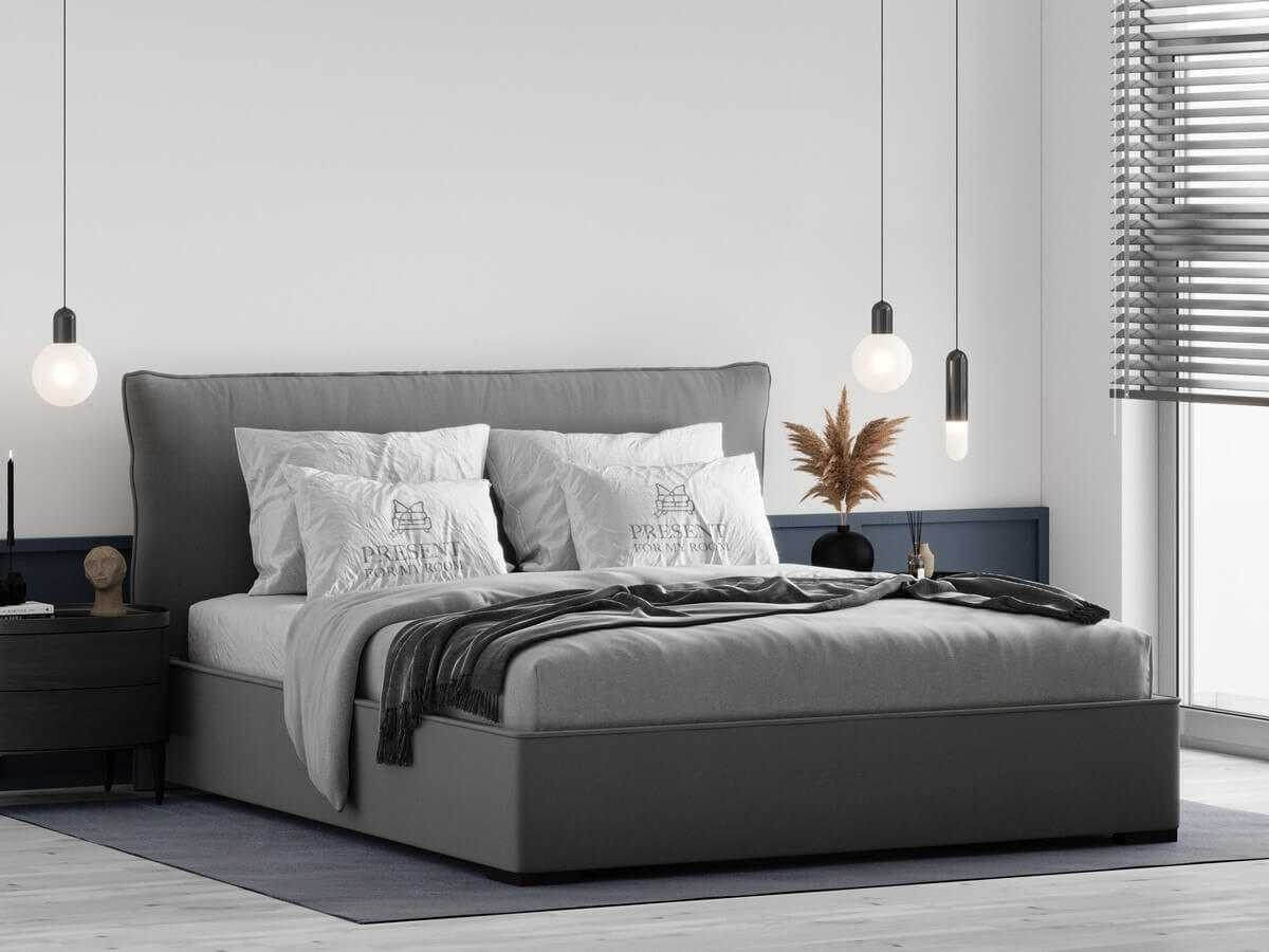 Воздушная двуспальная кровать с подъёмным механизмом из качественной фанеры и отделкой из текстиля в проекте «Небесное вдохновение». Габаритные размеры кровати 160х216х100 см. Дизайнер Татьяна Крыгина