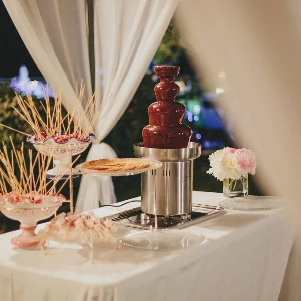 Стекающий по ярусам шоколад обычно используют для полива фруктов, орехов или различных кондитерских изделий, например, печенья или зефира. Как правило, кусочек продукта нанизывают на шпажку и подносят к разогретому шоколадному потоку. Помимо этого, работающий аппарат является источником замечательного аромата, подчёркивающего праздничную атмосферу.