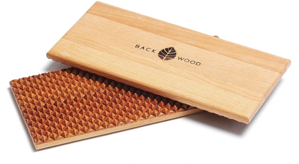 Огненная доска полностью изготовлена из дерева — кавказского бука. Сверху она покрыта воском. Это изделие является экологичным на 100%. Оно имеет гладкую хорошо отшлифованную поверхность. Шипы также деревянные в виде пирамидок. Шаг между ними составляет 10 мм. Длина равна 34 см., ширина — 15 см. Вес товара — 1 кг. Изделие отлично подойдет для новичков. Компания производитель — BackWood.