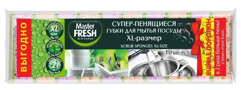 Отличные губки крупного размера, которые можно поделить на 2 части. Выпускаются в стандартной упаковке по 5 штук. Выделяются среди прочих низкой ценой и универсальностью использования.