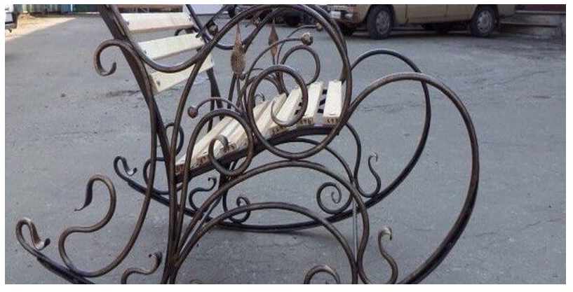 - Металл — практически вечный материал. При всех своих положительных качествах есть у него огромный недостаток — тяжесть. К тому же такое массивное кресло-качалка способно преподнести неприятный сюрприз — перевернуться, а это грозит серьезными травмами.
