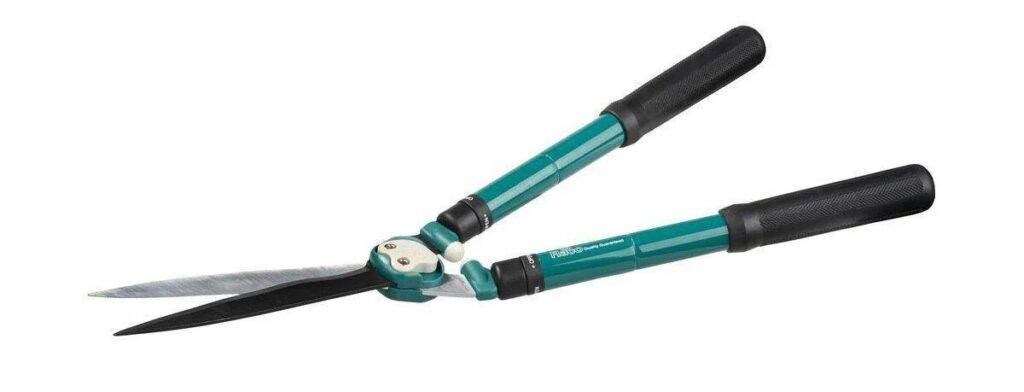 Телескопические ручки позволяют подобрать удобную длину с учетом роста и высоты живой изгороди. Надежный механизм фиксации не разбалтывается во время работы. На ручках установлены мягкие накладки из антискользящего материала. Удобный захват помогает приложить максимальные усилия. Механизм и конструкция рассчитаны на универсальную технику подрезки.
