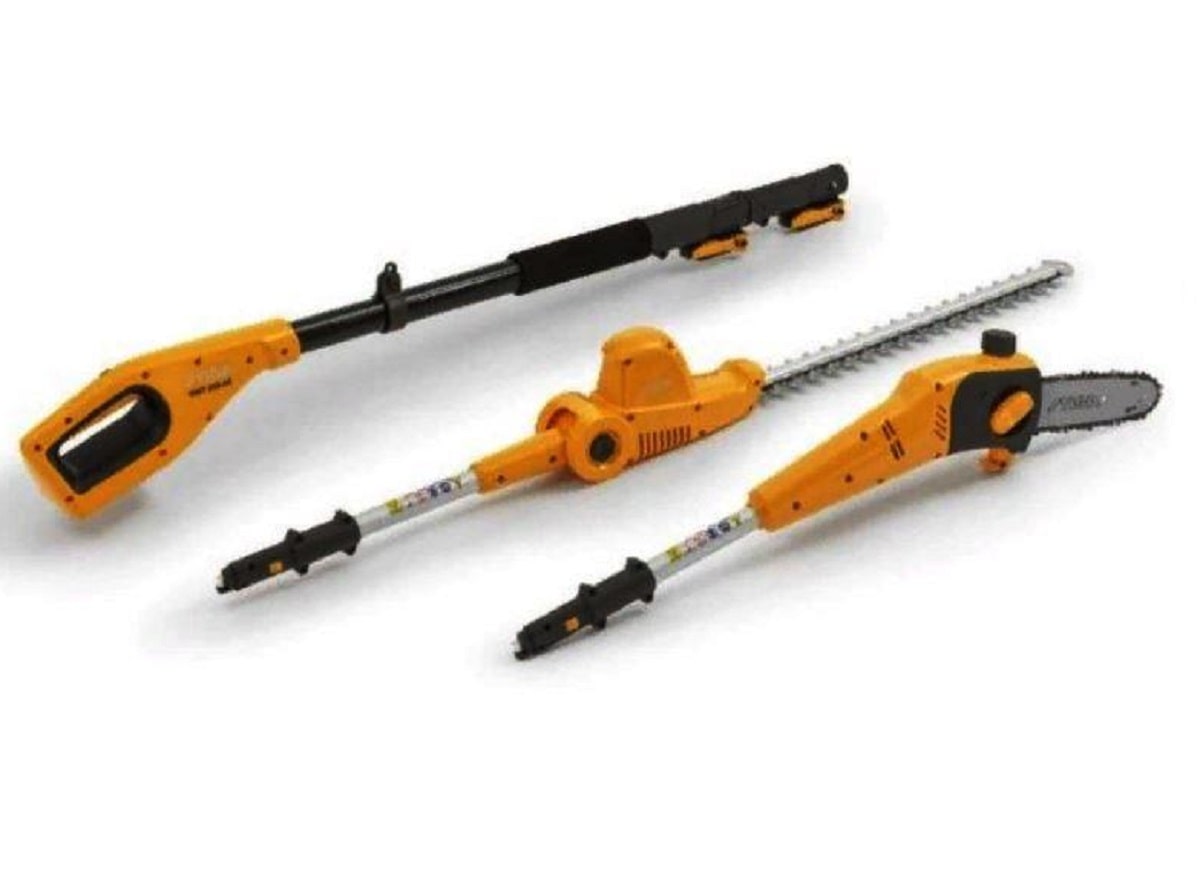 Большим преимуществом данного устройства является наличие множества функций. Кусторез-высоторез укомплектован выдвижной штангой и насадками для выравнивания зарослей, веток.