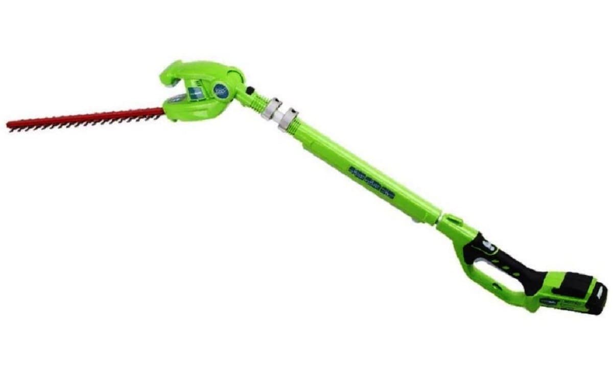 Одна из самых популярных моделей кустореза своей формой напоминает голову рыбы-меча. Огромный нож длиной 55 см дает доступ к верхушкам самых капризных кустов, а с технологией Quick-Cut ветки и сучья срезаются моментально. Пильная часть ножей выполнена с использованием лазера и алмазной заточки, что обеспечивает не только высокую производительность, но и защиту от износа (производитель дает 2 года гарантии. на прибор).