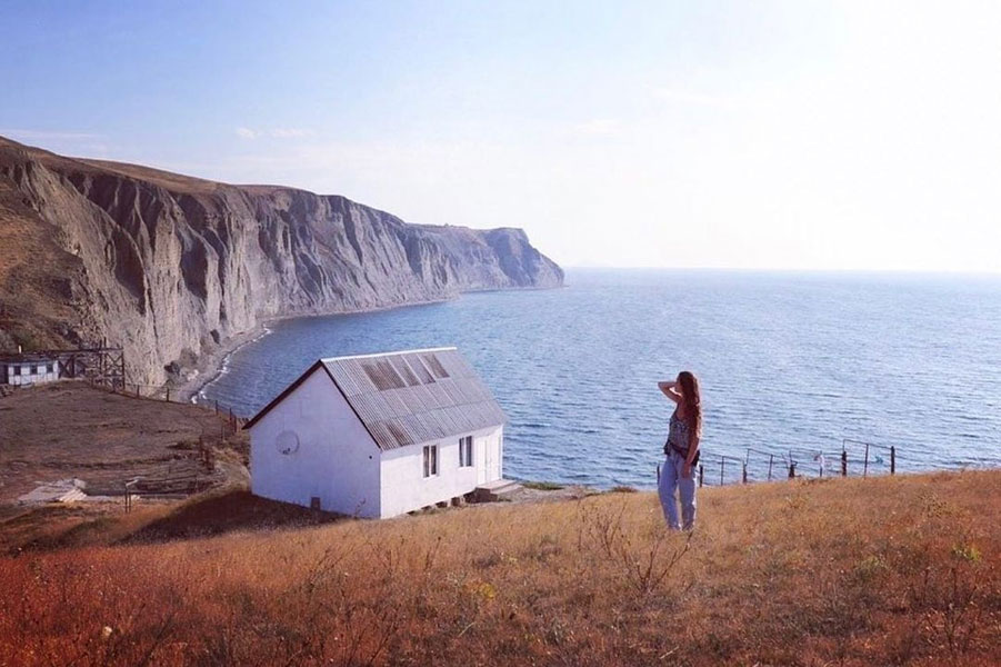 Не забудьте сделать фотографии на фоне одинокого белого домика у обрыва, взорвавшего соцсети (координаты: 44.814805, 35.112014). Еще одна завораживающая локация — Шоколадный пляж, камни которого похожи на расколотую плитку лакомства (координаты: 44.814706, 35.112786).