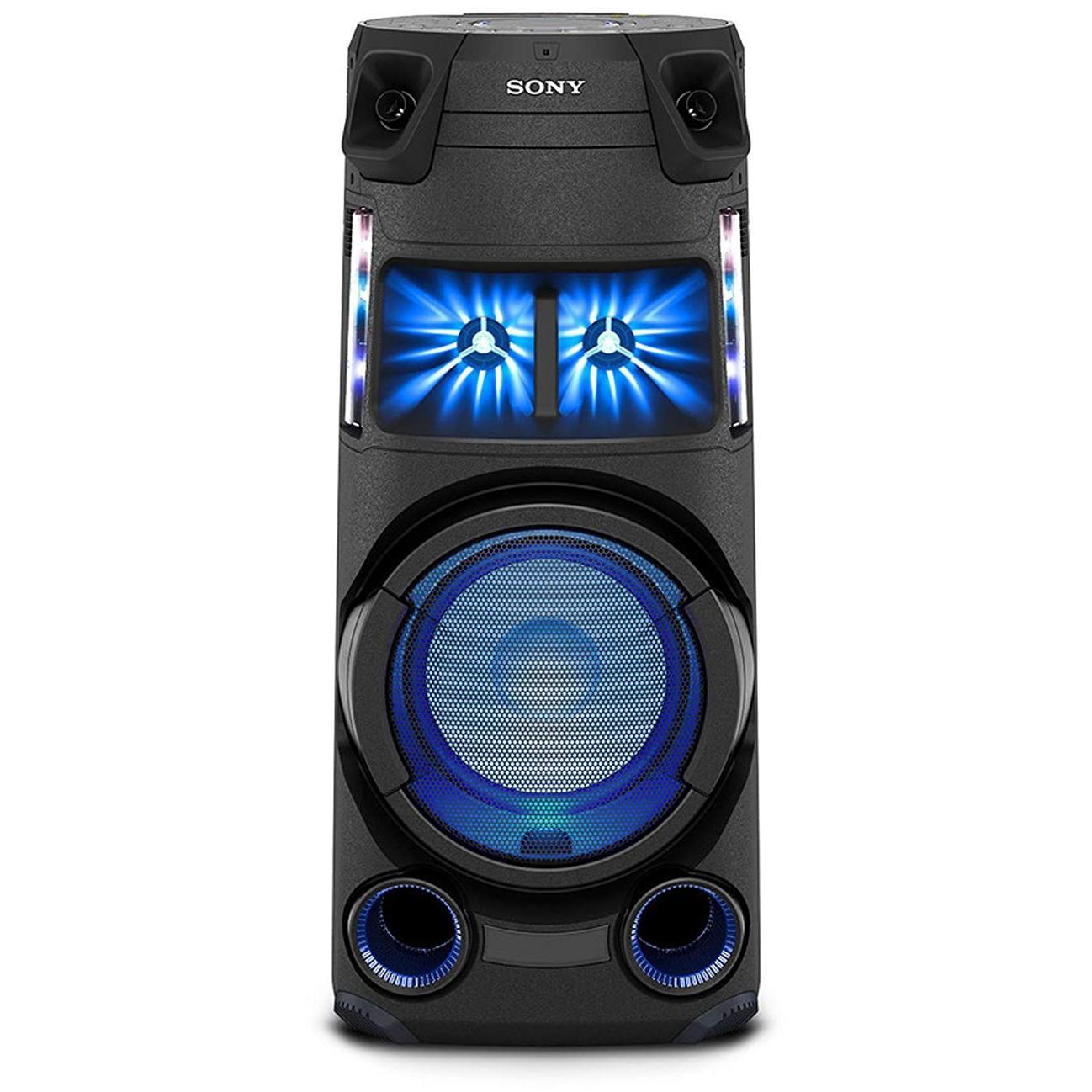 Переносная стереосистема, мощности которой (300 Вт) достаточно для проведения семейной вечеринки с качественным звуком, клубной подсветкой и созданием световых эффектов. Применяется технология дальней слышимости басов. Есть функция голосового управления, а также управления жестами. Есть радио, караоке, Bluetooth, разъем USB с функцией записи на флешку, вход HDMI, возможность подключения к TV и просмотра DVD.