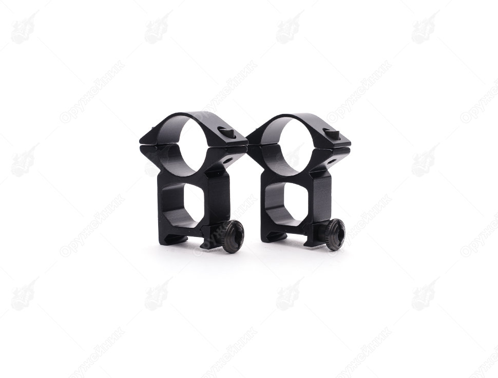 - На планку Вивера крепятся полукольца, устанавливается прицел, сверху фиксируются верхние части колец таким образом, чтобы без затруднений двигалась труба оптики.