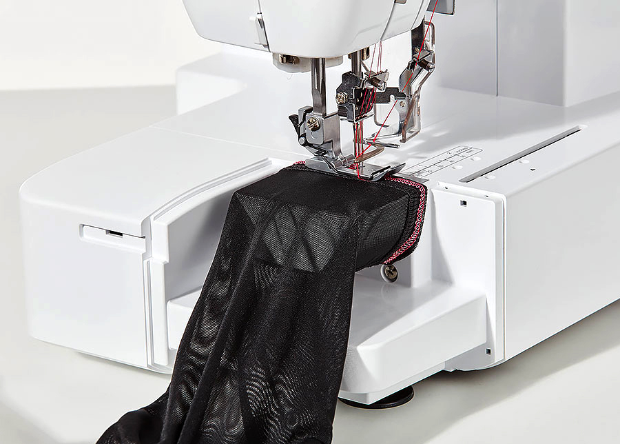 Важно, чтобы у машинки был установлен раздельный транспортер для подачи тканей, позволяющий как собирать, так и растягивать материал. Вид выполняемых швов