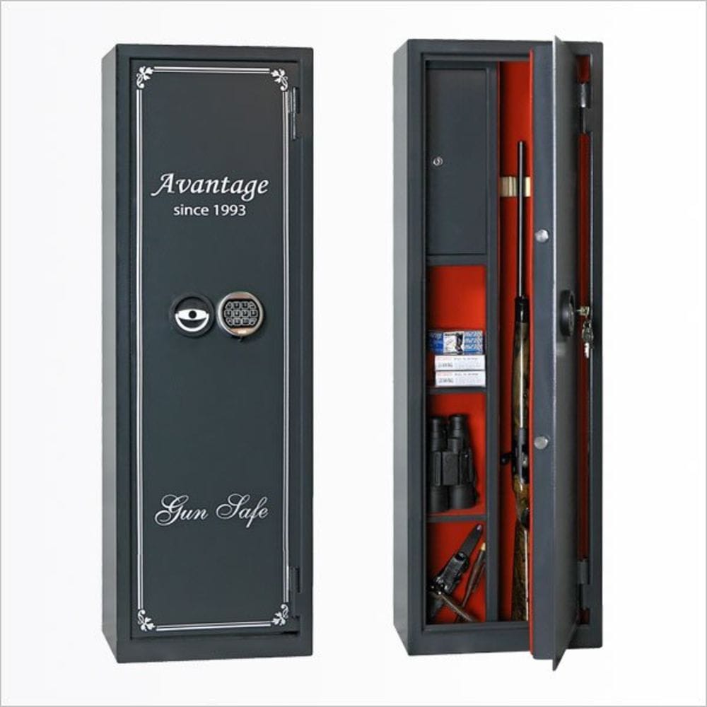 5. Охотничий сейф Авантаж 300Ms. Изготовитель: ONIX (Китай); габариты: 1500х300х300 мм., вес: 53 кг., толщина стенок 45 мм., толщина двери 60 мм. Тип замка: ключевой, ригельный, имеется внутреннее запираемое отделение, есть держатели ружей. На двери присутствуют съёмные «карманы». Охотничий сейф Авантаж 300Ms рассчитан на хранение 2-3 ружей. Ориентировочная стоимость 25000 рублей. Гарантия 5 лет. Простая и надёжная модель, отлично впишется в любой интерьер.