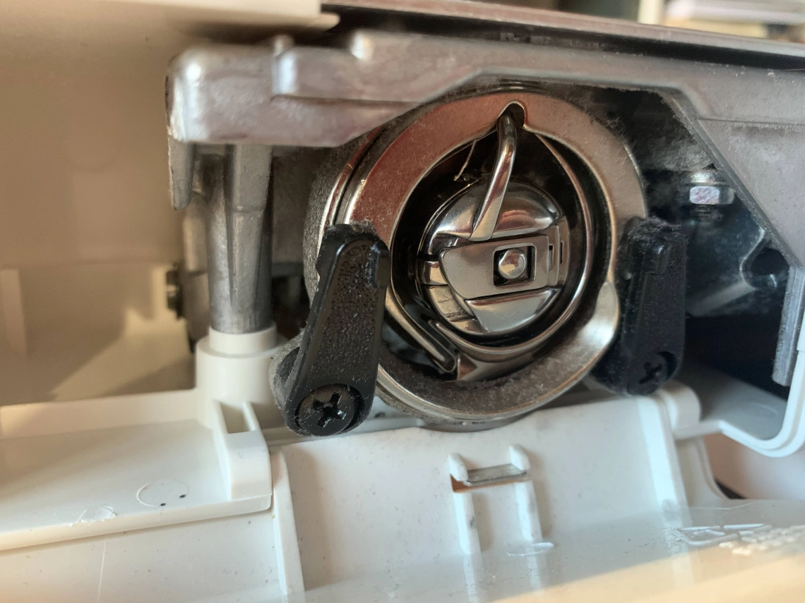 Это не относится к ротационному петлителю. Механизм расположен чуть ниже крышки игольной пластины. Чтобы поменять шпульку с шпульной нитью, нужно только снять крышку, чтобы вытащить предыдущую на новую. С первого взгляда видно, что это намного проще и быстрее, чем в случае с челночным крючком. Кроме того, прозрачность клапана позволяет видеть, сколько ниток осталось на катушке, что очень удобно при длительном шитье. Также стоит отметить, что этот механизм более тихий в работе.