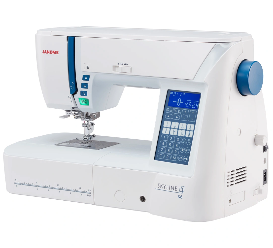 Последняя модель Janome Skyline S6 на сегодняшний день является самой дорогой из упомянутых нами компьютерных машин. Он имеет увеличенное поле работы, что значительно улучшает стандарт шитья, встроенный верхний транспорт AcuFeed Flex и целых 512 программ стежков. Кроме того, он позволяет плавно регулировать ширину стежка до 9 мм и длину стежка до 5 мм. Нельзя не отметить относительно быструю и бесшумную работу со скоростью до 1000 впрысков в минуту.
