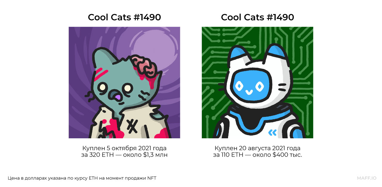 Через несколько часов после снижения цены вся коллекция была распродана. Общий объем продаж Cool Cats NFT составил $12,77 млн.