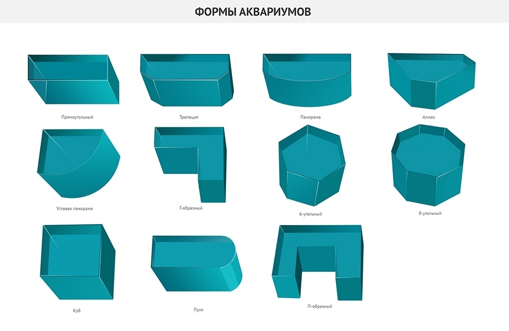 Предпочтительнее остановить свой выбор на аквариуме привычной, прямоугольной или квадратной формы – в нем проще поддерживать чистоту, легче подобрать и установить оборудование, а для его обитателей это самый лучший и удобный вариант для проживания.