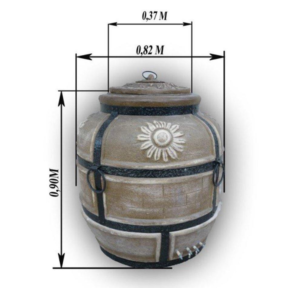 Кроме формы тандыра на его вместимость влияет объем и высота. Есть модели с показателем от 75 до 120 см, позволяющие разместить внутри только курицу или небольшие туши поросят, индейки. Диаметр по самой широкой части бывает от 50 до 71 см и влияет на максимальный размер пиццы и количество лепешек на стенках.