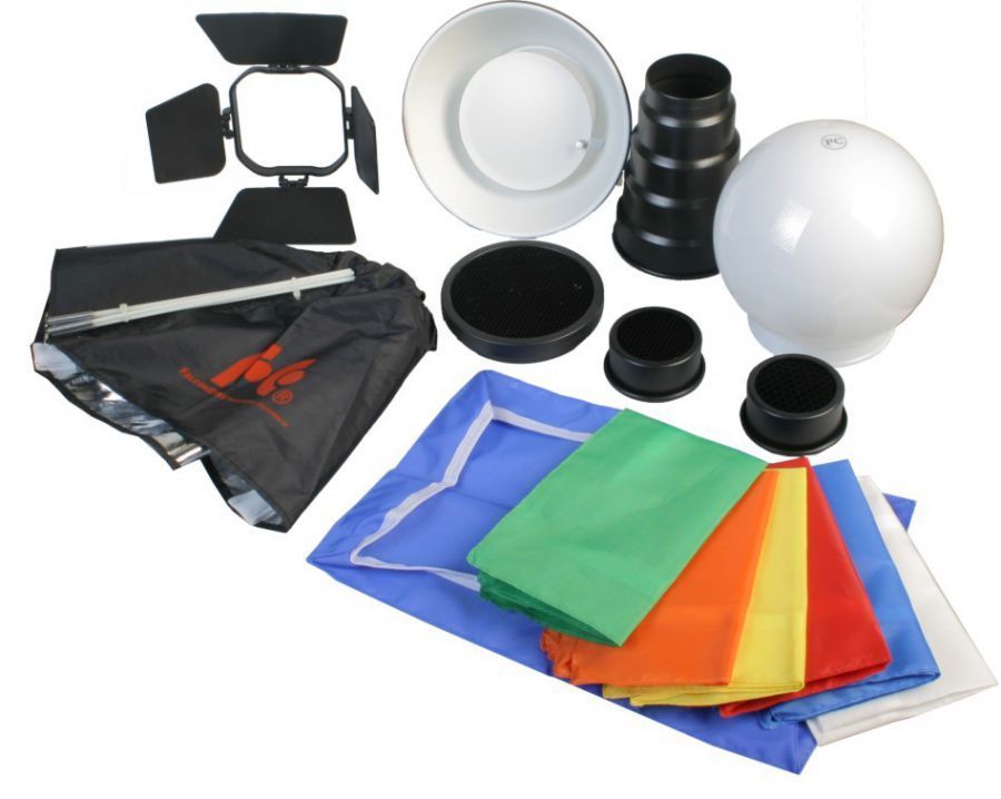 Комплект Софтбокса Phottix Pro HD 80 см. включает в себя: 1. Сумка для переноски. 2. Софтбокс. 3. Диффузор. 4. Соты.