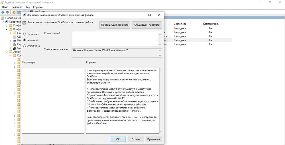 Отключение OneDrive в профессиональной, корпоративной, образовательной версии Windows 10