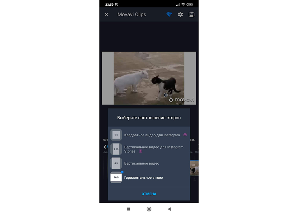 После этого потребуется выбрать размер исходного видео, для пользователей Инстаграм предлагаются готовые шаблоны для квадратного видео и вертикального, используемого в сторис.