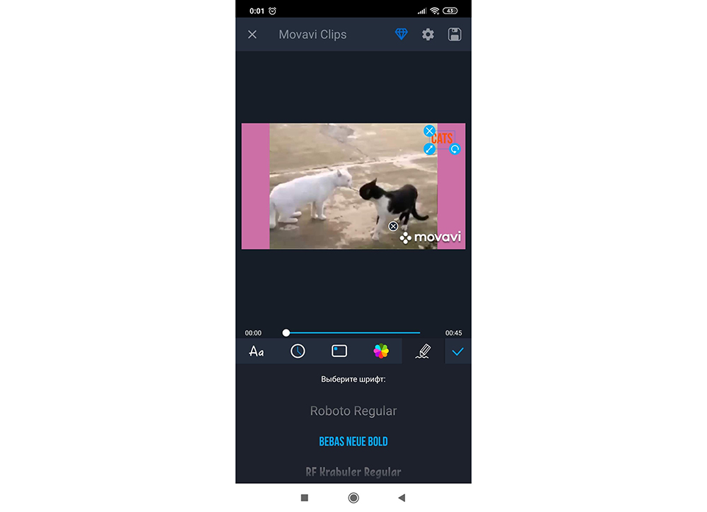 Также под видеоклипом пользователь видит все возможные функции программы. К примеру, можно добавить фон, надпись, предварительно выбрав необходимый шрифт и цвет.
