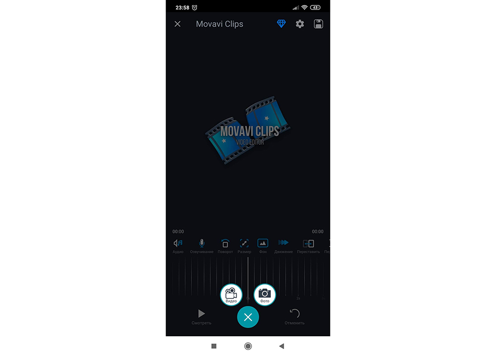 Приложение предлагает пользователю загрузить для редактирования фотографию или видеоролик.