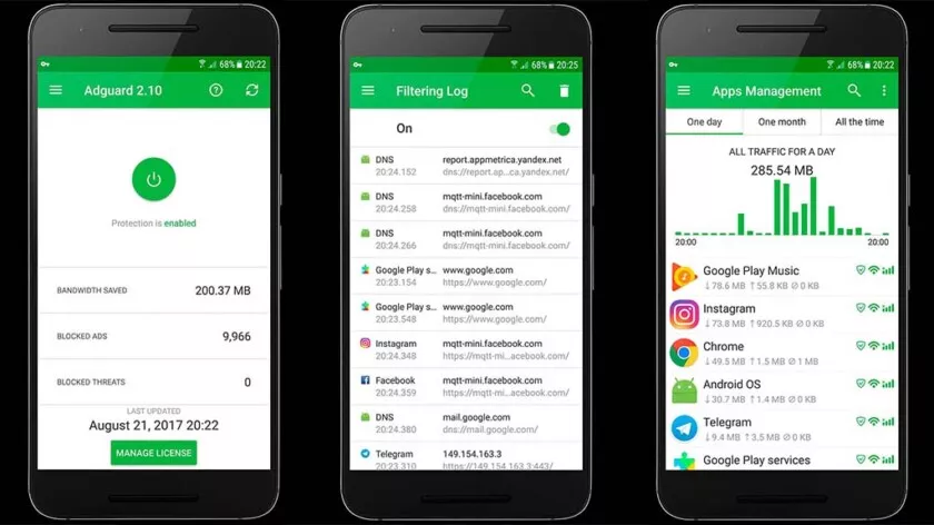 AdGuard — это своего рода джокер-карта. Мы мало что слышали об этом до написания этой статьи, но, похоже, для нас это сработало нормально. Приложение блокирует рекламу так же, как и Adblock Plus. AdGuard работает как служба в фоновом режиме и фильтрует веб-трафик. Он действительно работает без root, но требует небольшой дополнительной настройки. Он также отслеживает весь ваш веб-трафик, как и такие приложения, как Glassware. Вы также получаете красивый пользовательский интерфейс Material Design, позволяющий собрать все воедино. Бесплатная версия блокирует рекламу только в веб-браузерах. Премиум-версия стоит 24,99 доллара в месяц, но вы также получаете премиум-версию AdGuard для вашего ПК с Windows или Mac.