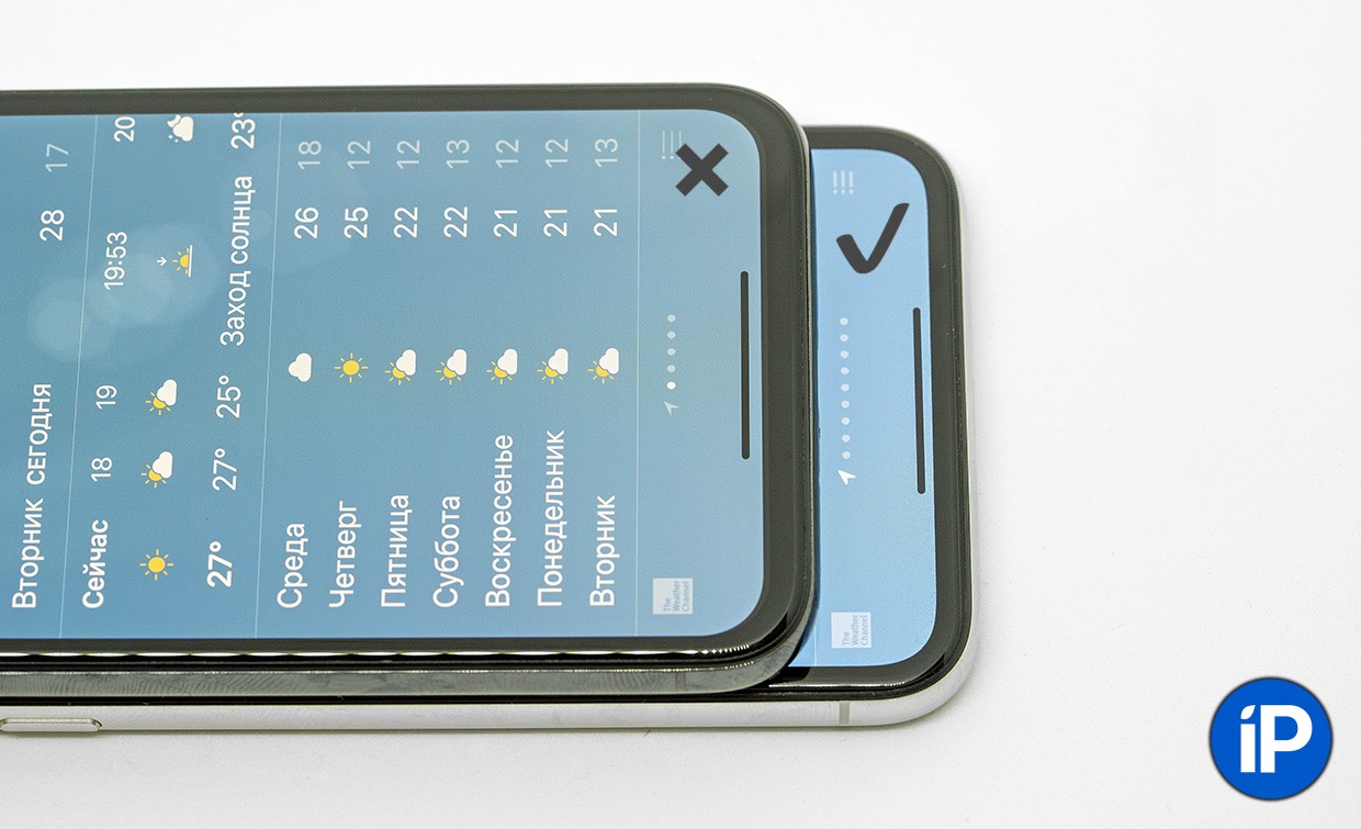 Хоть экран iPhone X полностью стеклянный, производители оставили на нем небольшую черную нишу вверху. Этот участок с камерой не является частью экрана. У производителей копий пока нет таких возможностей для создания подобных экранов на своих творениях. Поэтому они на прямоугольном экране с помощью программы просто окрашивают этот участок черным цветом. Включение устройства сразу показывает черную прямоугольную рамку. То есть, экран подделки границы все-таки имеет.