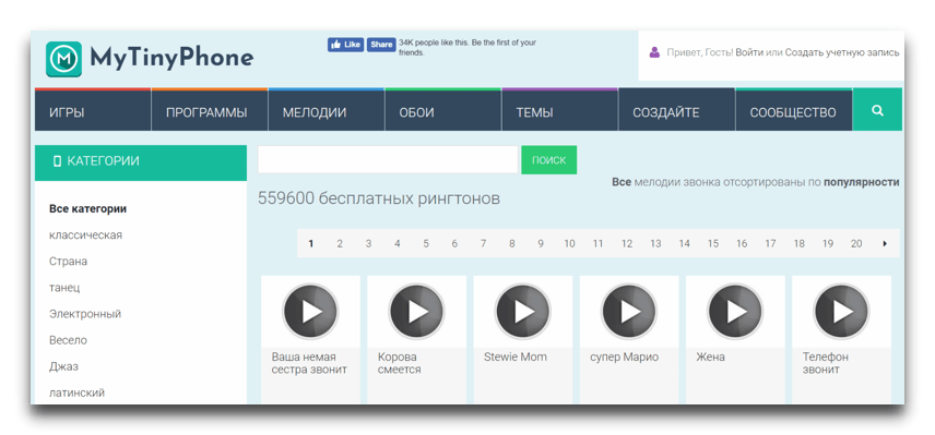 Рингтоны на веб-сайте организованы по категориям или тегам, и там достаточно легко ориентироваться. Удобный параметр предварительного просмотра, позволяет вам быстро прослушать рингтон, даже на мобильных устройствах.