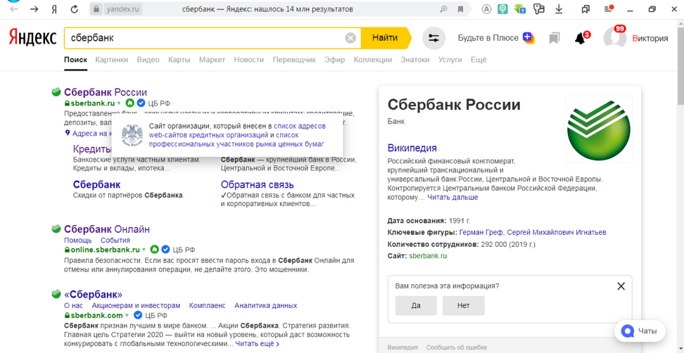 Последняя означает, что ресурс внесён в список ЦБ РФ как принадлежащий кредитной организации, что гарантирует безопасность при введении личных данных