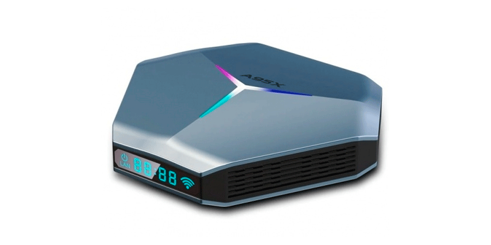 На втором месте A95X F4. Модель имеет футуристичный дизайн. Ценители стиля точно будут довольны. На передней панели расположена цифровая панель, которая показывает время и данные о подключённой сети. Сверху – световая индикация, её цвет зависит от того, что сейчас воспроизводится на приставке и в каком положении она находится (соответствующая таблица имеется на Али).