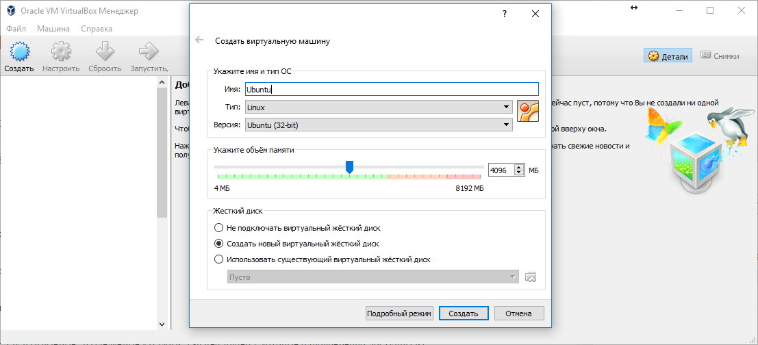 Пример создания новой виртуальной машины рассматривается на примере компьютера с Windows, на которой устанавливается виртуальная машина windows 10.