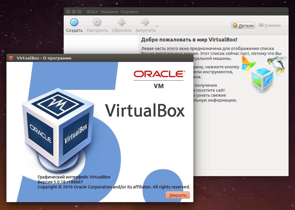 VirtualBox — простой, мощный и бесплатный инструмент для виртуализации от ORACLE. Позволяет создавать виртуальные машины и устанавливать практически любую современную операционную систему: Windows, MacOS, FreeBSD или Linux. Система поддерживает работу с сетями, поэтому, при желании можно дать виртуальной машине выход в Интернет. VirtualBox поддерживает как 32 так и 64 разрядные версии операционных систем и способен работать с виртуальными компьютерами, созданными в программе VMware Workstation.