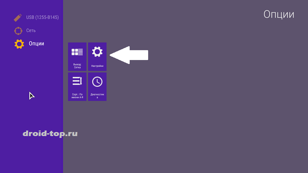 Настройки Vimu Media Player. Для управления настройками плеера нужно нажать на иконку в виде шестерёнки.