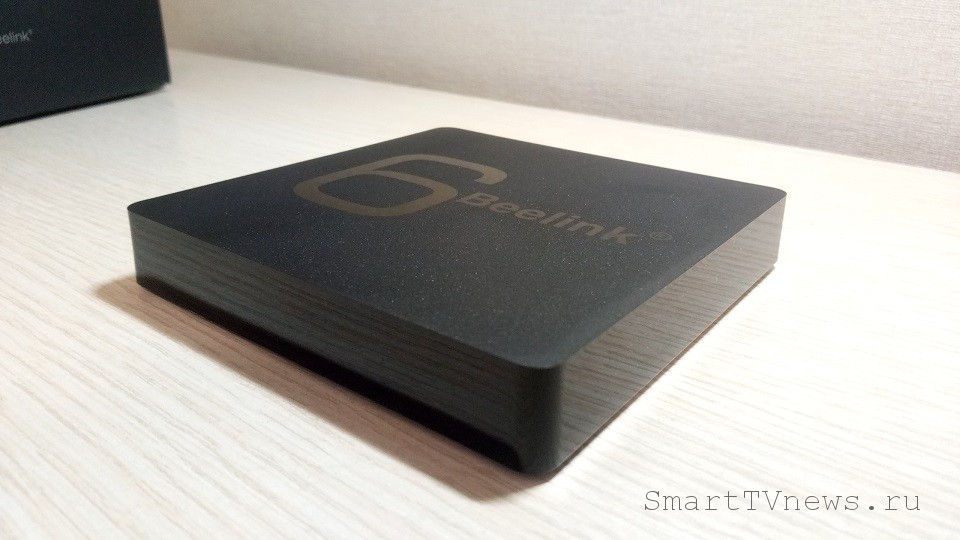 Единственное, что можно сказать о внешнем виде Beelink GS1 — оно стандартное для ТВ-боксов. То есть обыкновенная квадратная коробочка имеющая следующие параметры: Длина — 96 мм. Ширина — 96 мм. Высота — 16 мм. Вес 190 грамм.