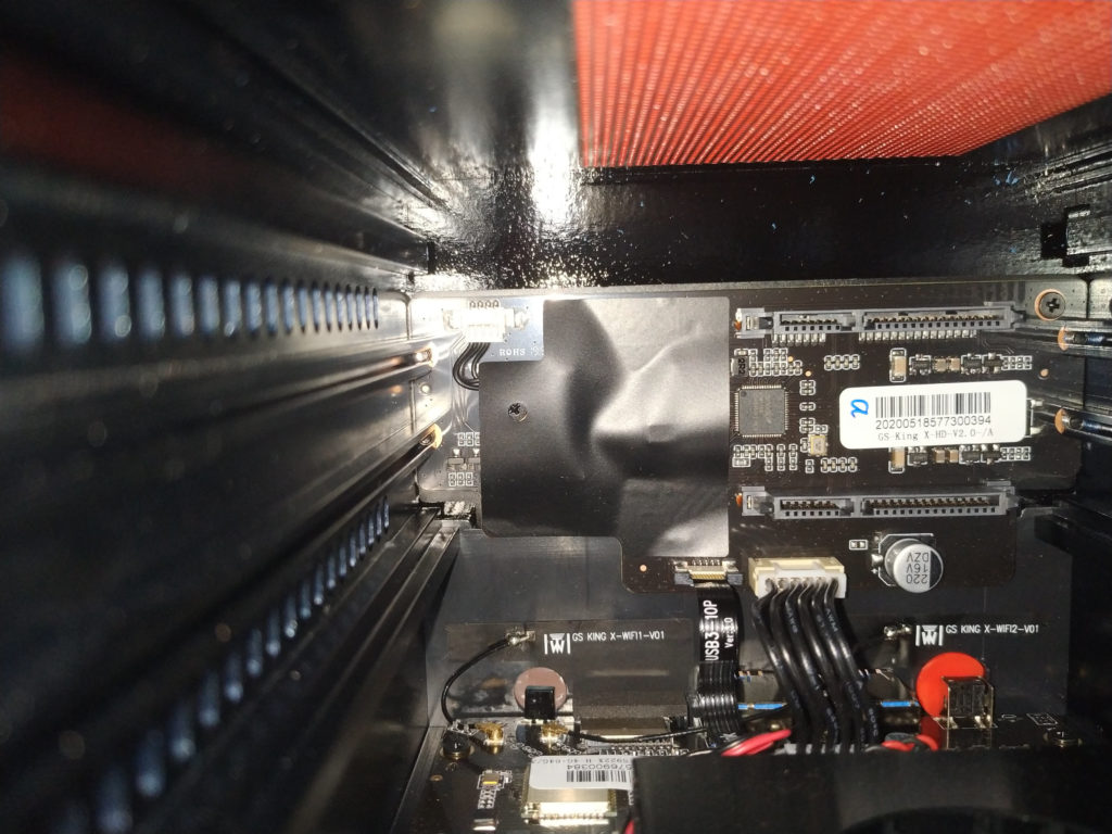 Мы видим два других черных винта на левой и правой стороне платы, которые все еще держатся за шасси. Красная часть наверху — это пылезащитный фильтр, и мы также можем ближе рассмотреть плату SATA с двумя SATA разъемы и на основе ASMedia ASM1156 USB 3.0 для контроллера SATA с поддержкой скорости 5 Гбит/с и UASP. Несмотря на то, что она была запущена много лет назад, на ASMedia нет страницы продуктов, но она может быть похожей на чип ASM1153E, и нам удалось найти информацию о другом продукте на Amazon.