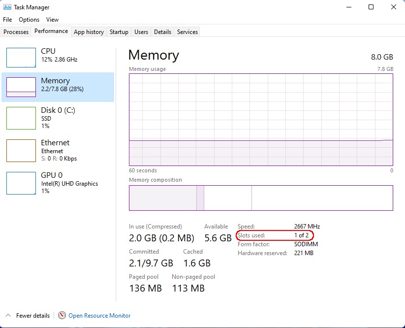Модель для обзора включала M.2 2280 SATA SSD емкостью 256 ГБ в комплекте с установленной Windows 11 Pro и один накопитель DDR4 2666 МГц объемом 8 ГБ, а также возможность добавления 2,5-дюймового диска SATA в крышку, которая подключается к материнской плате через короткий ZIF-кабель: