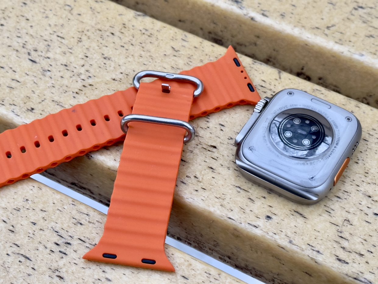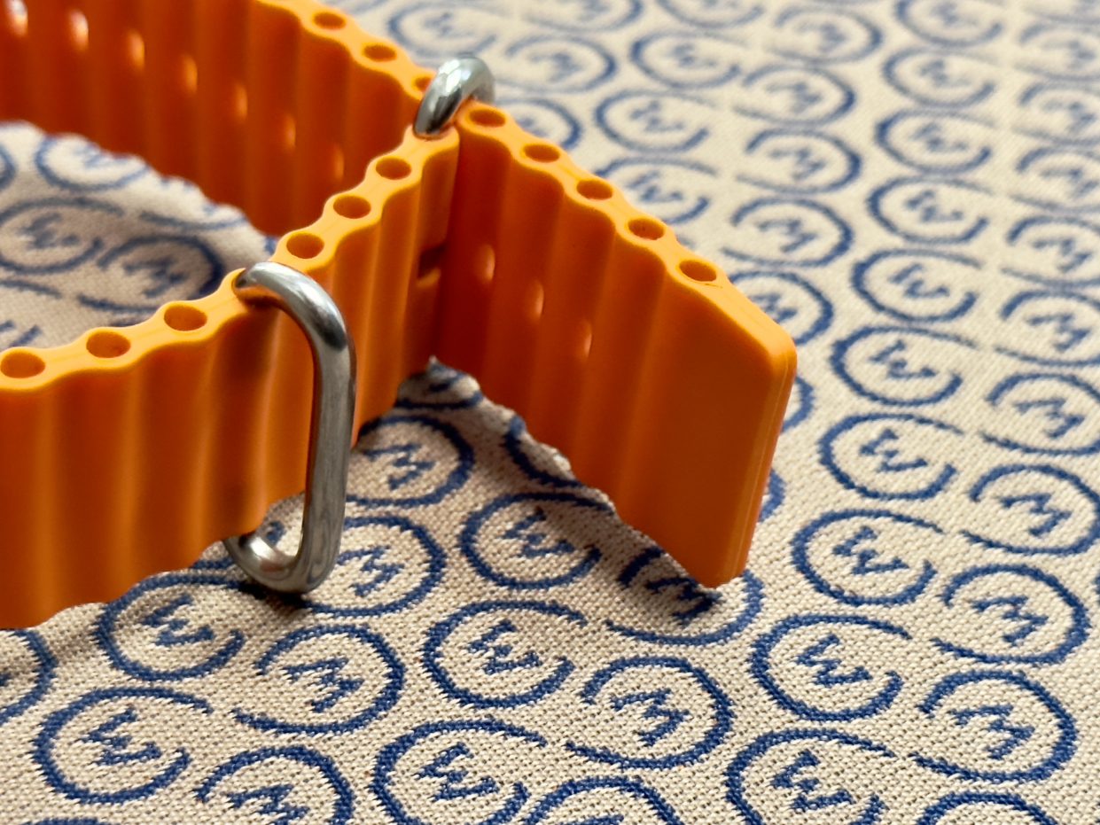 Застежка тоже не совсем такая же, как у оригинала. Если в настоящих Apple Watch Ultra можно вынимать штекер и переставлять в другие отверстия в ремешке, то здесь такого ждать не стоит. Застежка находится только в одном слоте и никуда не передвигается. Если очень хочется, можно подпилить ножовкой.