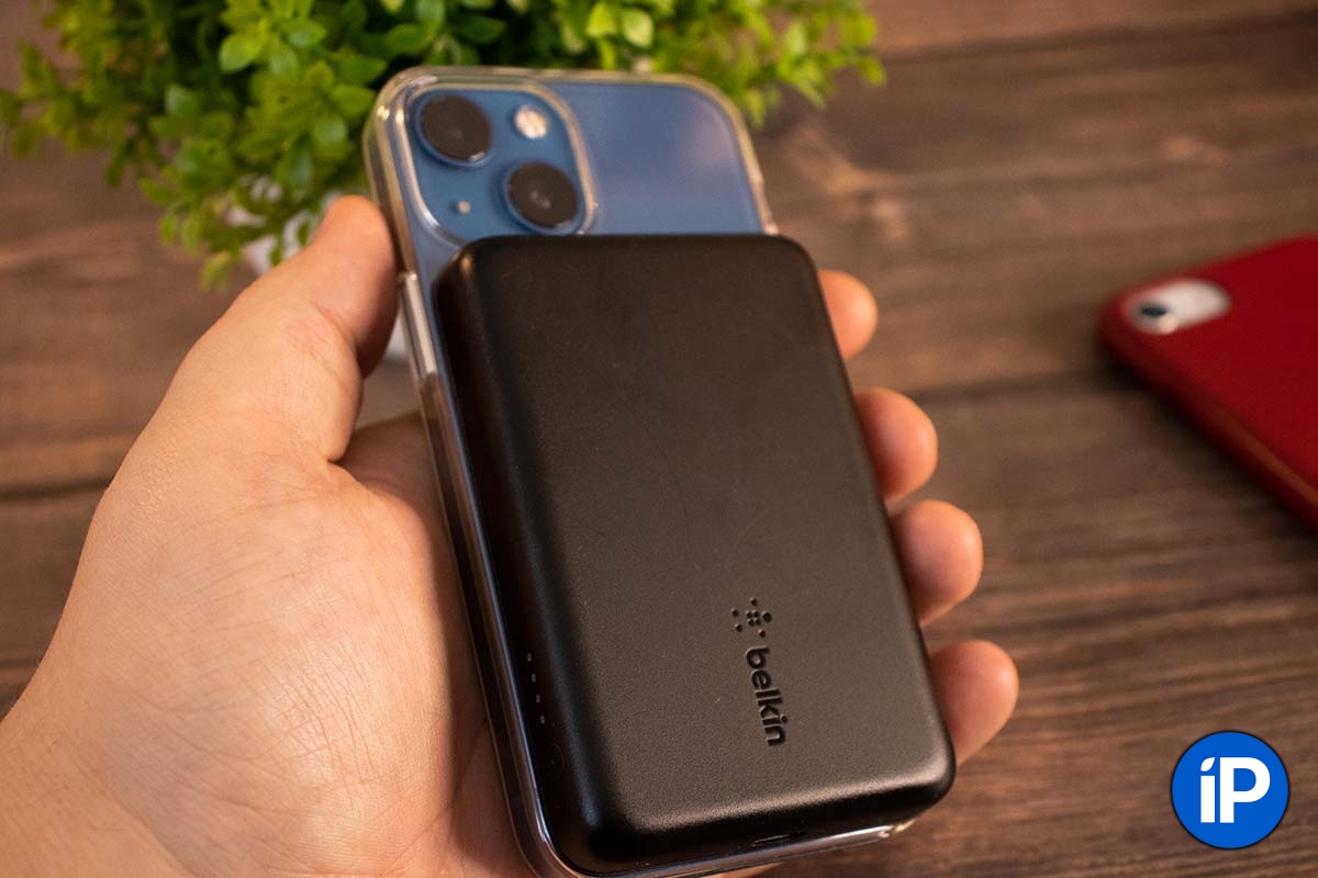 Впридачу решил докупить ещё внешний аккумулятор MagSafe. Присмотрелся к недорогому решению от Belkin, стоил 4990 рублей. Ёмкость 2500 мАч, так что 13 mini можно полностью зарядить один раз.
