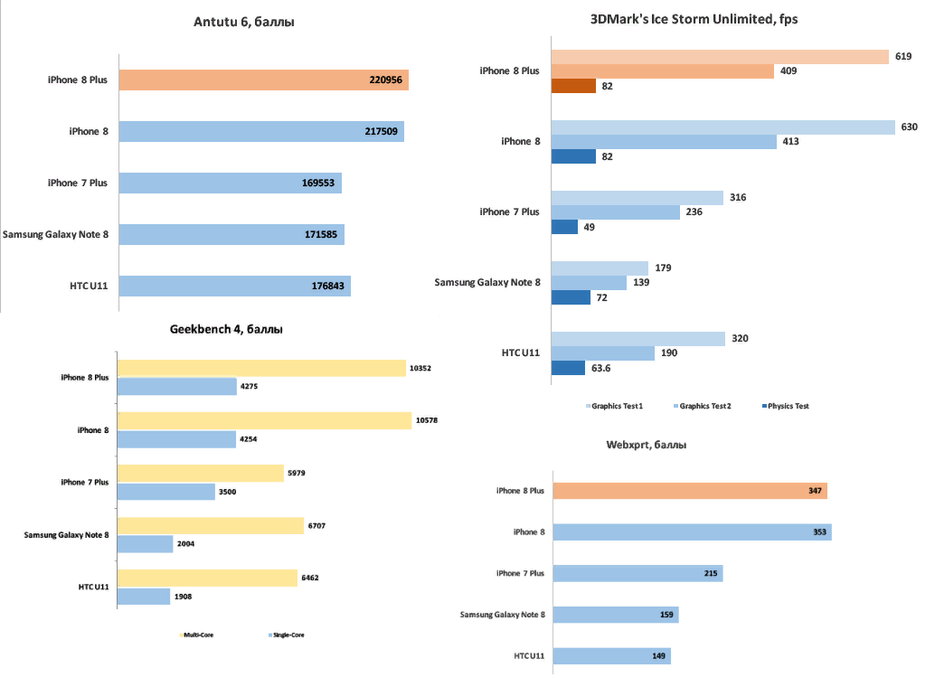 Стоит отметить, что увеличение производительности, которое должен иметь iPhone 8 Plus по сравнению с «младшей» версией, заметно, в основном, при запуске требовательных к ресурсам игр.