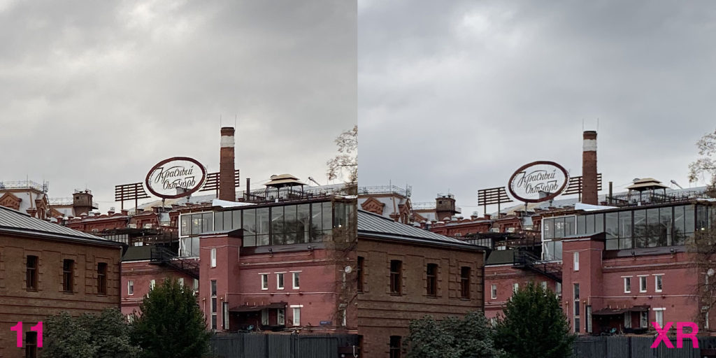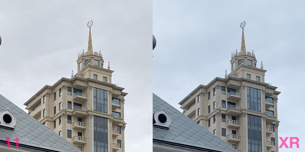 В целом снимки с 11 выглядят более адекватно с точки зрения баланса белого. Там, где XR может уйти в синеву, одиннадцатый сохраняет естественную цветопередачу.