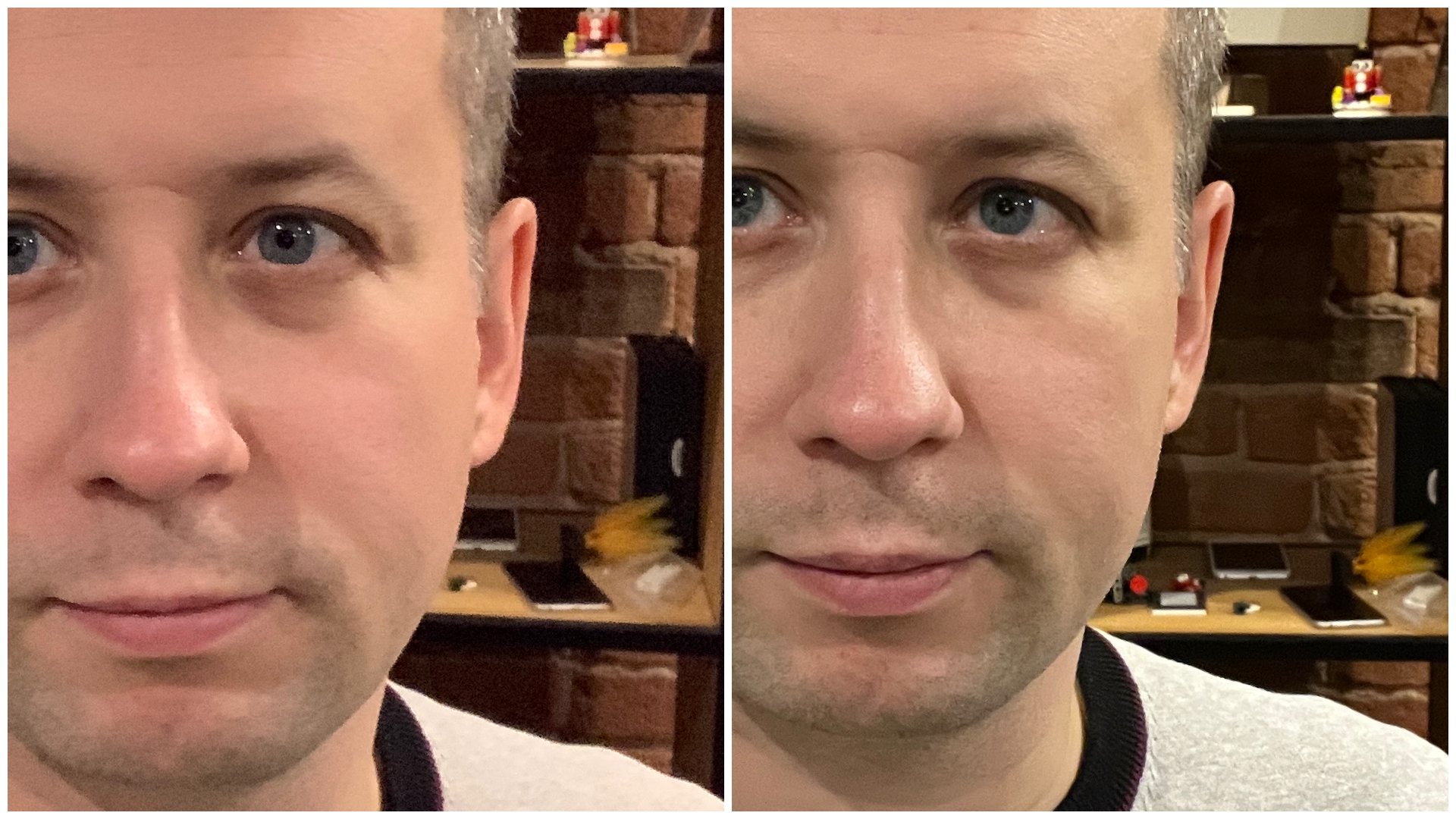 Надо сказать, что и новому телефону всё так же с трудом удаются детали вроде бровей, бороды и волос. Тем не менее новый айфон выигрывает по точности цветопередачи, детализации, да и само размытие ощущается более естественным и натуральным.