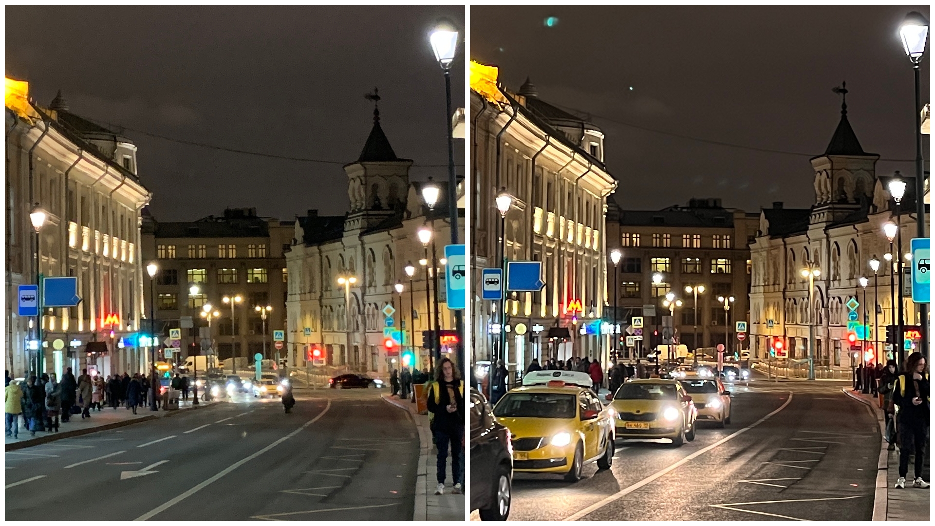 Можно усложнить сравнение и попробовать снимать при минимальном освещении, но в таком случае это будет совсем не честным испытанием: у iPhone XR просто нет ночного режима, который на iPhone 13 вытягивает сложные схемы.
