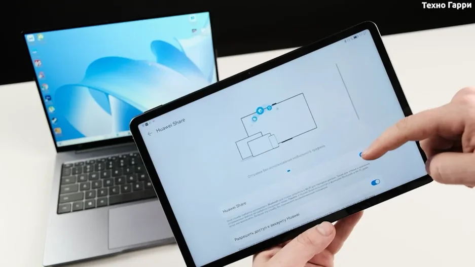 Также стоит сказать отдельно про великолепное взаимодействие планшетов Huawei с ноутбуком Huawei. Подробнее смотрите об этом в обзоре, который был ранее, но если вкратце, то мы можем очень просто и легко подключить планшет к ноутбуку без провода и нам станут доступны три режима взаимодействия. Мы можем продублировать экран ноутбука на планшет. Может его расширить. Или же можем передавать файлы между планшетом и ПК посредством drag and drop. Очень удобно.
