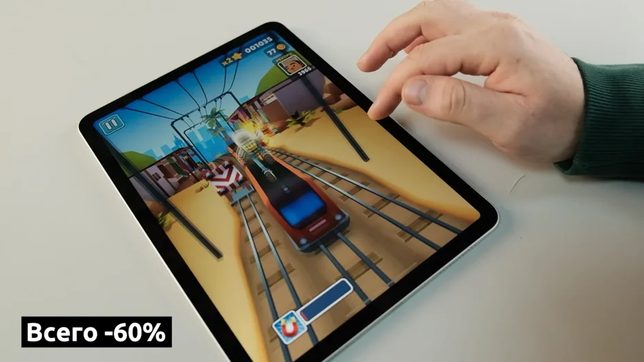 Далее, я поиграл пол часа в Sabway Surfers на iPad и потерял 15%.