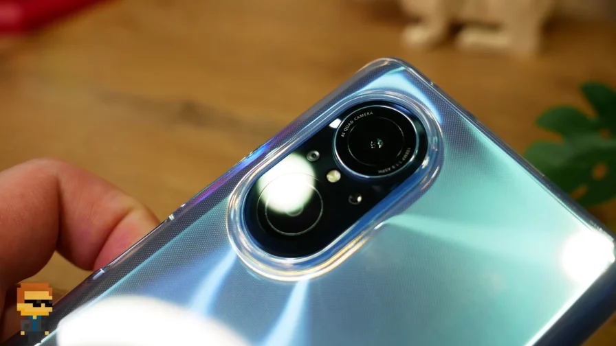 Задняя панель смартфона сделана из закаленного стекла. В цвете «Полуночный черный» она однотонная, а «Голубой кристалл» — стильно блестит и переливается (как рабочая сторона компакт-диска). Корпус быстро собирает на себя отпечатки пальцев, но по большому счету это не проблема — в комплектацию Huawei nova 9 SE входит чехол, который не только защищает панель, но уменьшает перепад высоты между блоком камер и поверхностью корпуса.