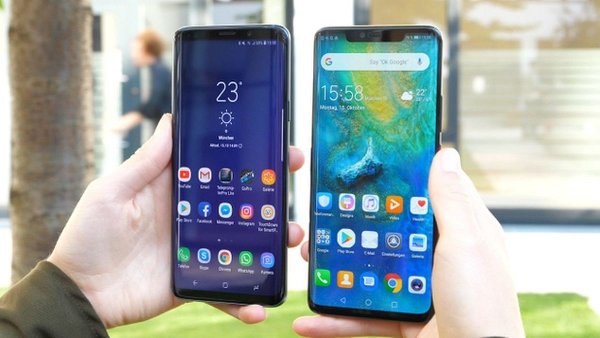 Samsung Galaxy S9 (слева) и Huawei Mate 20 Pro (справа) можно принять за родственные модели, если посмотреть только спереди