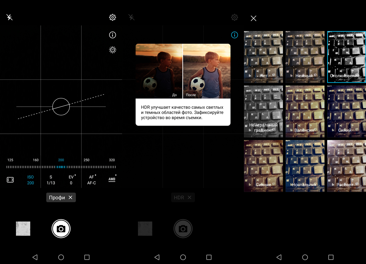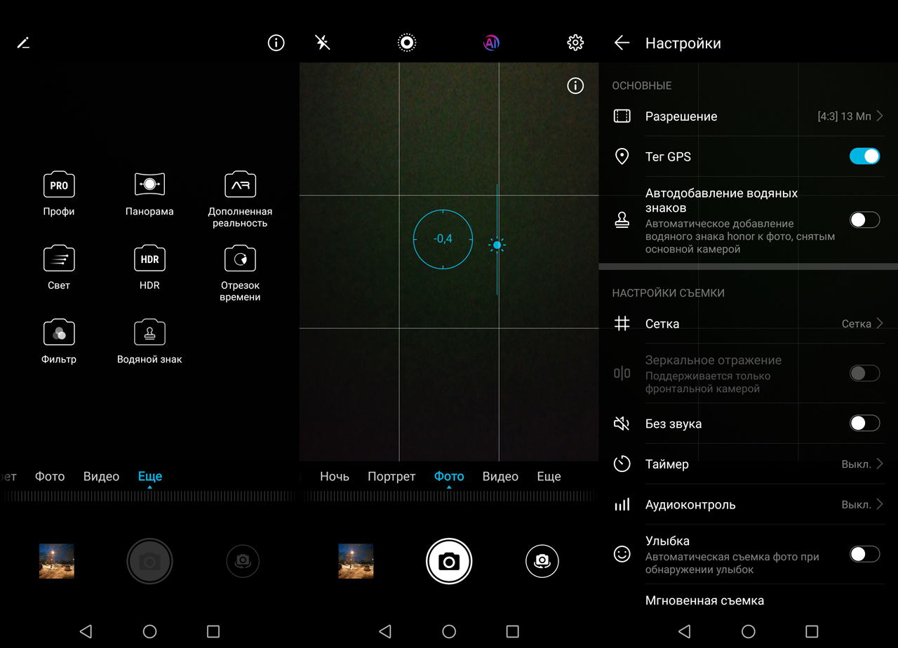 Для фирменных режимов художественной съемки с параметром «Свет» потребуется использовать штатив. В «Дополненной реальности» есть разные анимированные эффекты и фоны. Интервальная съемка (режим «Отрезок времени») поддерживается только в качестве HD (1280х720 точек).