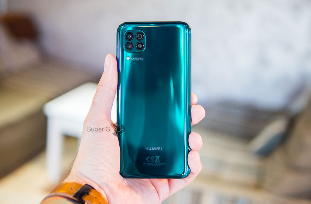 В руке Huawei P40 lite лежит очень неплохо. Он достаточно тонкий, весь такой покатый и глянцевый. Олеофобное покрытие очень серьёзное — оно спереди, на стекле. Сзади установлена глянцевая пластиковая крышка, в меру устойчивая к глубоким царапинам. Однако мелкой сеткой она покрывается влёт. Благо, аппарат можно одеть в комплектный чехол, да и плёнка спереди наклеена ещё на заводе.