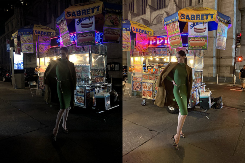 Фото на iPhone X (слева) и фото на iPhone 11 с использованием ночного режима (справа)