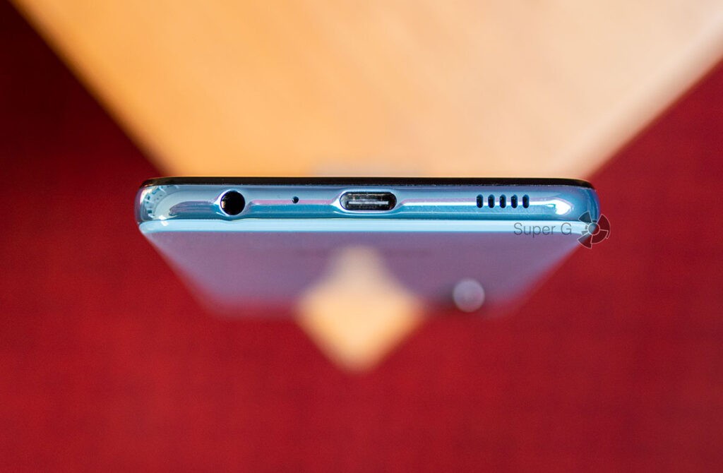 Сверху отверстие микрофона, снизу USB-С, порт для наушников и динамик. Он тут отдувается в одиночку — стереозвука нет. Да и в целом звучание не поражает воображение — середнячок, каких много.