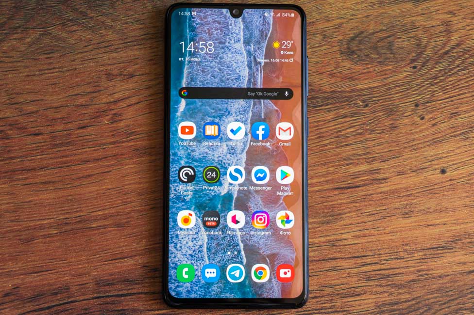 Смартфон получил дисплей диагональю 6,1″, изготовлен он, естественно, по технологии Super AMOLED. Разрешение панели Full HD+, или 2400×1080 пикселей, соотношение сторон — 20:9, а плотность пикселей составила 431 ppi.